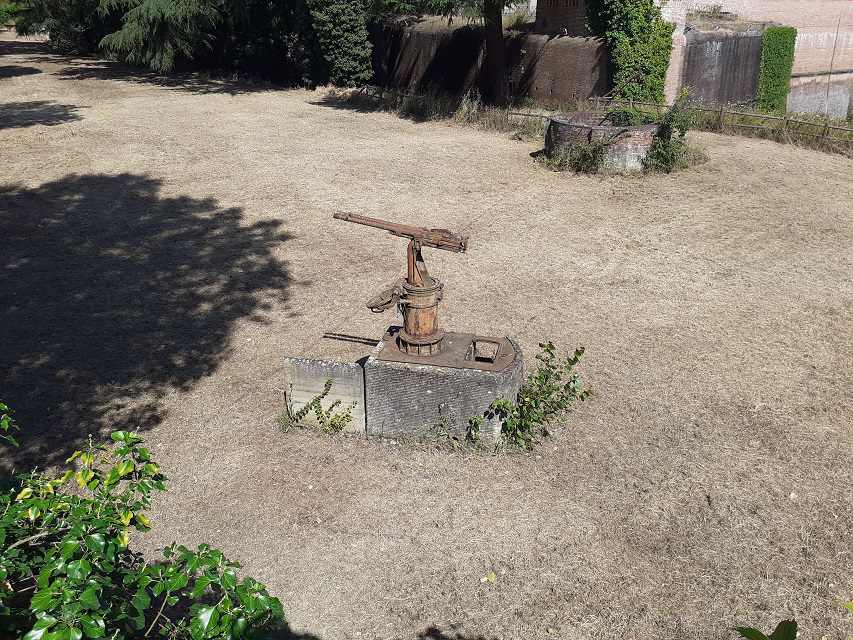 La mitragliera, donata nel 1987 a Pistoia dall’ANMI, da alcuni anni versava in uno stato di incuria e di abbandono: coperta di ruggine, esposta alle intemperie, la targa divenuta quasi illeggibile, poco e mal segnalata ai visitatori che compiono il giro dei camminamenti della Fortezza, tanto da renderla un cimelio quasi “invisibile” agli stessi cittadini pistoiesi.