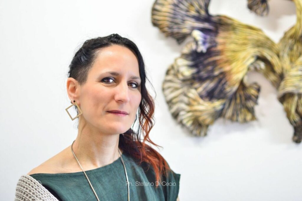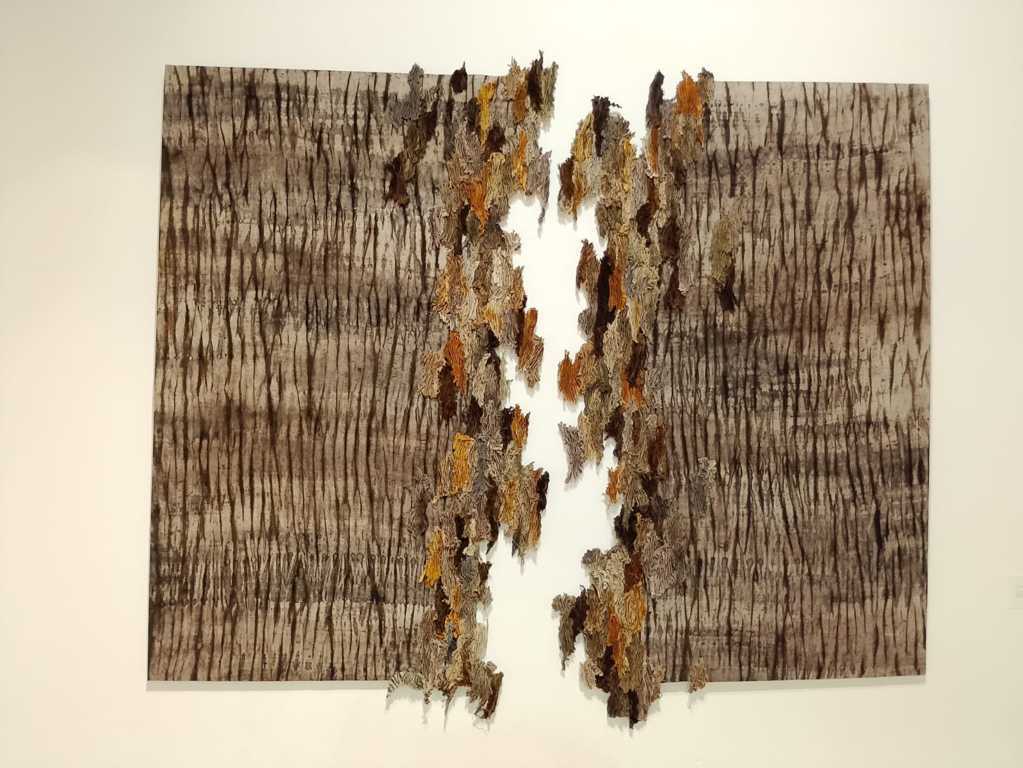 La sapiente mano dell’artista dà vita a tessuti che riproducono cortecce con le loro mille protuberanze, increspature e variazioni di colore, ma anche tronchi di alberi, foglie, muschi e licheni, in un viaggio dentro quel complesso ecosistema biologico che caratterizza il mondo vegetale.
