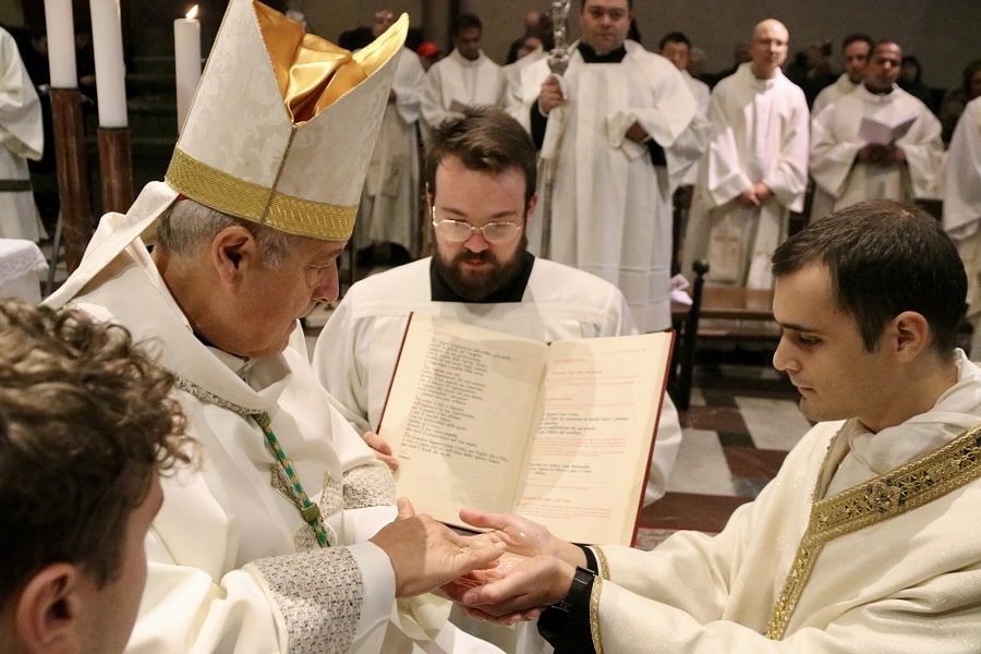 PRATO – “Metti il tuo entusiasmo e la tua freschezza a servizio della Chiesa”. È l’invito che il vescovo Giovanni Nerbini ha rivolto a don Alessandro Tacconelli, 25 anni, neo sacerdote della diocesi di Prato. Questa mattina nella cattedrale di Santo Stefano è stata celebrata la messa di ordinazione sacerdotale del giovane seminarista alla presenza di tantissimi fedeli. Tacconelli è cresciuto nell’oratorio cittadino di Sant’Anna in viale Piave, ha studiato al collegio Capranica a Roma e sta prestando servizio nella parrocchia romana di San Pio X alla Balduina. Queste realtà erano presenti con laici e sacerdoti in cattedrale per rappresentare vicinanza e affetto al sacerdote.