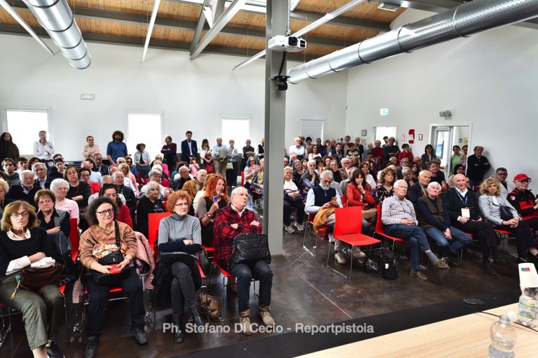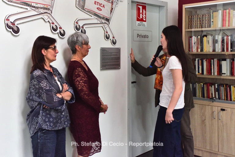 Infine si sofferma sulla proposta fatta dal suo gruppo consiliare ed accolta all’unanimità da tutti, di intitolare a lui l’ospedale di comunità che, in base al DM 77/2022, anche Pistoia avrà. Alla fine dell’incontro, come dicevamo, la nipote e le figlie Francesca e Ilaria hanno scoperto la targa che lo ricorda posta in prossimità dei libri donati alla sezione Soci Coop.