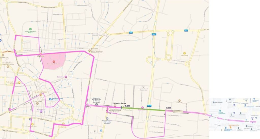 La partenza e l’arrivo sono previsti davanti alla sede della Confartigianato in via E. Fermi; la corsa si svilupperà lungo un percorso che attraverserà alcune aree della zona di Sant’Agostino e del centro cittadino.