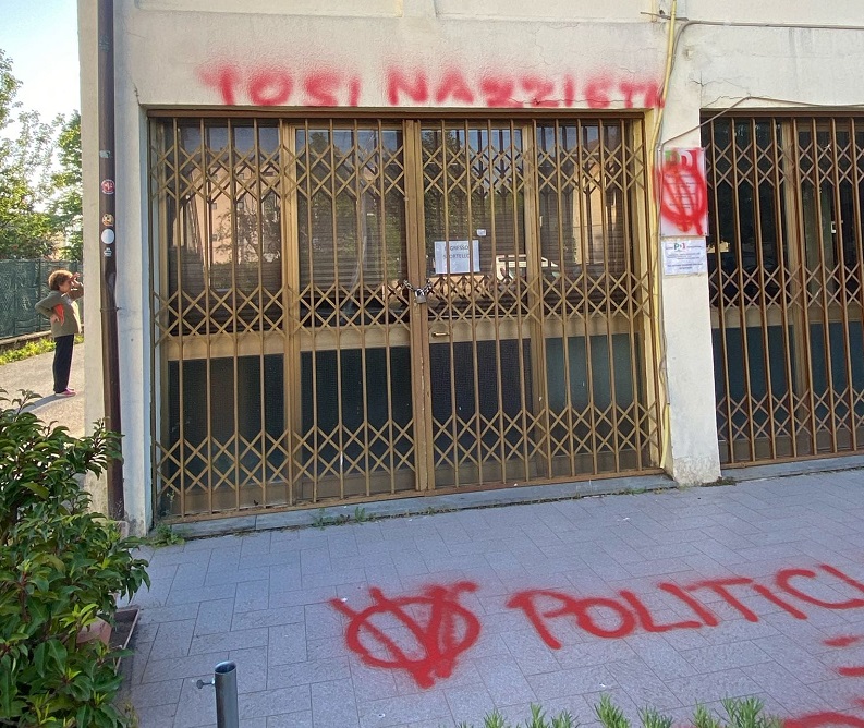 PISTOIA – Continuano gli attacchi novax indirizzati al consigliere comunale PD Paolo Tosi. A un mese di distanza dalla comparsa delle scritte nel sottopasso della superstrada, nella notte tra il 14 e il 15 aprile, è stata presa di mira la Casa del Popolo di Bonelle, che ospita la sede del partito democratico.
