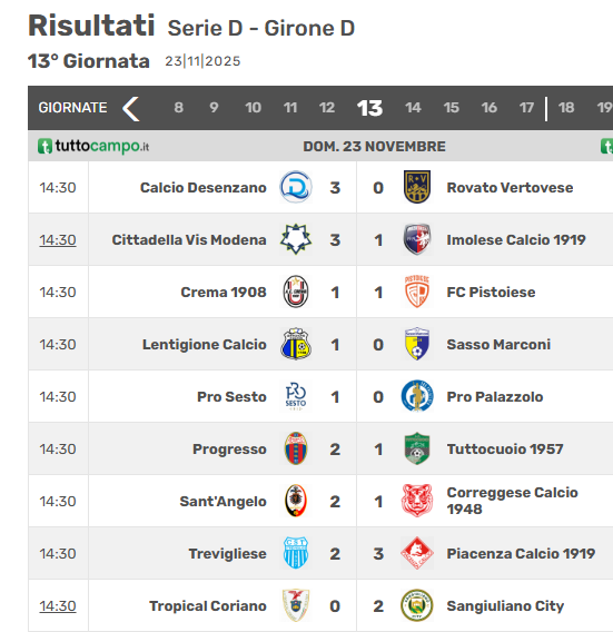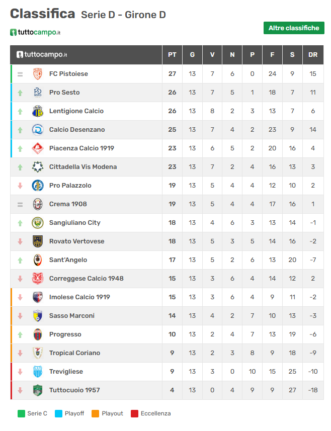 CREMA – La Pistoiese impatta per 1-1 sul campo del Crema, interrompendo la serie di successi consecutivi che durava da quattro partite, tra campionato e Coppa Italia, ma si conferma sul primo gradino della classifica, sia pure con le avversarie che accorciano le distanze. Un partita difficile, quella con i lombardi, sbloccata dalla rete di Recino, alla quale ha risposto il colpo di testa vincente di Gennari. La squadra arancione domenica prossima affronterà la Pro Sesto al Melani.
