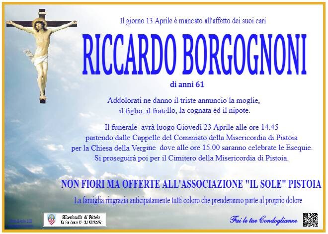 HomeNECRO Riccardo Borgognoni di Redazione 22 Aprile 2026 0 351 FacebookTwitterPinterestWhatsApp Condividi FacebookTwitterPinterestWhatsApp PrecedenteAll’ospedale Santo Stefano di Prato arriva “IoSano”ProssimoEcco i candidati di cinque liste del centrosinistra Redazione Related Articles TOSCANA Al via il Bando Cultura 2026 di Publiacqua PISTOIA Primavera al Museo 2026: gli eventi PISTOIA A Conad Nord Ovest il premio “Impresa Top per puntualità bancaria’’ Rispondi Cancella risposta Commento: Inserisci il tuo commento Nome:* Inserisci il tuo nome Email:* Indirixzo email sbagliato Inserisci la tua email Sito web: Save my name, email, and website in this browser for the next time I comment. ULTIMI ARTICOLI TOSCANA Al via il Bando Cultura 2026 di Publiacqua PISTOIA Primavera al Museo 2026: gli eventi PISTOIA A Conad Nord Ovest il premio “Impresa Top per puntualità bancaria’’ PRATO Imprese a Prato e provincia, aumentano quelle giovanili: +5,17% PISTOIA Badia a Pacciana, a fuoco un deposito di materiali Carica altro