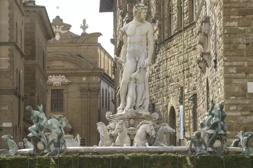 FIRENZE (Ansa) – Si è arrampicata sulla fontana del Nettuno, detta anche il Biancone, in piazza della Signoria a Firenze per una sfida prematrimoniale, finendo per danneggiare il monumento.